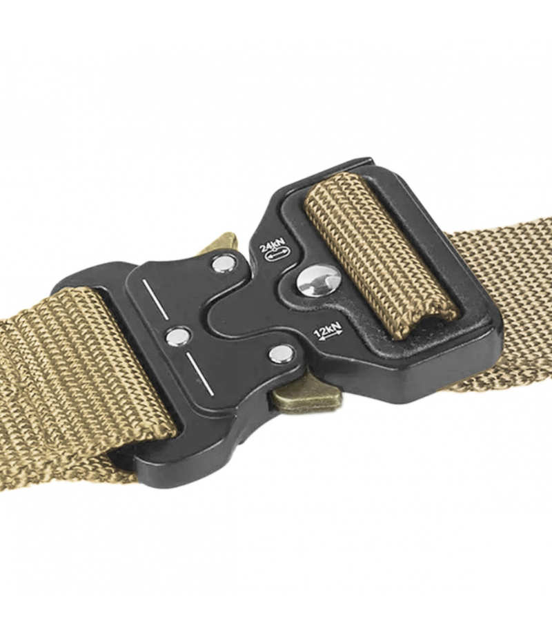 Doskonały, taktyczny pasek parciany do spodni o długości aż 131 cm. Dzięki specjalnej konstrukcji zapięcia i możliwości regulacji długości jest on niezwykle uniwersalny i łatwo go dopasować do rozmiaru w pasie. Wygodna i estetyczna klamra zapinana na zatrzask typu QR. Pasek został wykonany z wytrzymałego i odpornego na przetarcia poliestru.