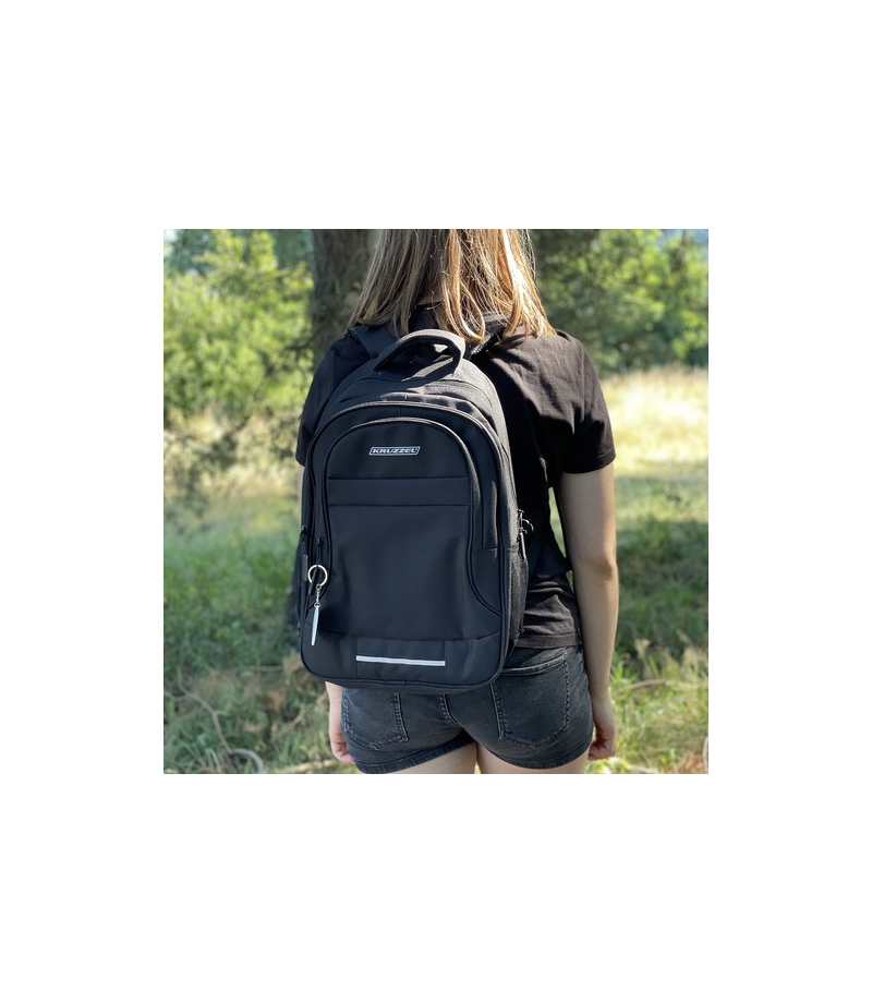 CZARNY PLECAK O POJEMNOŚCI 22l MOCNY PLECAK Z WYSOKIEJ JAKOŚCI MATERIAŁU OXFORD 600D - plecak wchodzący w skład zestawu został wykonany z wytrzymałego materiału OXFORD 600D , który charakteryzuje się wysoką odpornością na uszkodzenia mechaniczne oraz warunki atmosferyczne . Wnętrze plecaka wykończone jest podszewką również wykonaną z tego samego materiału , co stanowi dodatkową ochronę dla książek i zeszytów przed wilgocią . Dodatkowo, między warstwą zewnętrzną a podszewką, na...