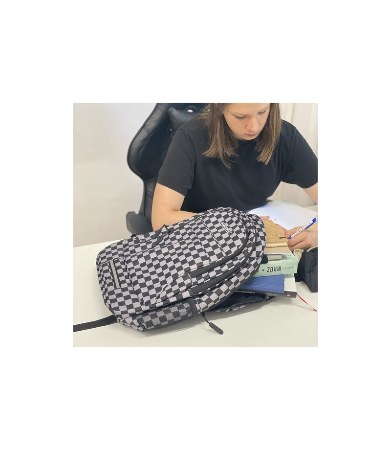 DESIGNERSKI PLECAK W KRATKĘ Z WORKIEM 22l MOCNY PLECAK Z WYSOKIEJ JAKOŚCI MATERIAŁU OXFORD 600D - plecak wchodzący w skład zestawu został wykonany z wytrzymałego materiału OXFORD 600D , który charakteryzuje się wysoką odpornością na uszkodzenia mechaniczne oraz warunki atmosferyczne . Wnętrze plecaka wykończone jest podszewką również wykonaną z tego samego materiału , co stanowi dodatkową ochronę dla książek i zeszytów przed wilgocią . Dodatkowo, między warstwą zewnętrzną a...