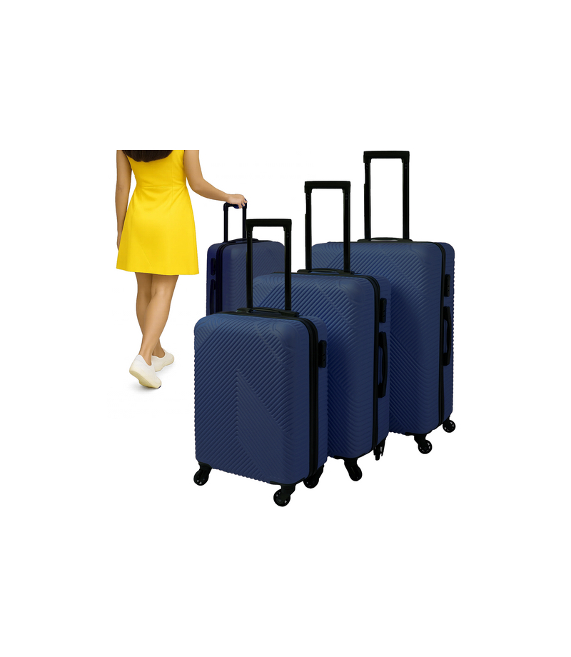 Walizka podróżna zestaw walizek duża średnia mała na kółkach walizki na bagaż granatowe TRIZAND! - walizki będą stabilnie stały, nawet w pełni załadowane - specjalnie wyprofilowana podstawa i 4 kółka zapewniają stabilność – walizki nie przewracają się nawet w pozycji pionowej i przy większym obciążeniu dodatkowe - walizki idealne do bagażnika - zestaw zawiera ...