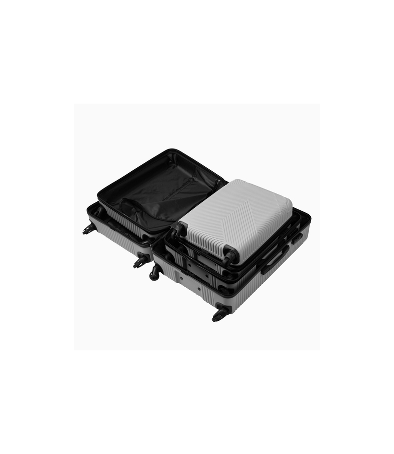 walizki idealne do bagażnika - zestaw zawiera trzy rozmiary – mała, średnia i duża walizka – dopasujesz je idealnie do każdej podróży i schowasz jedna w drugą, oszczędzając miejsce