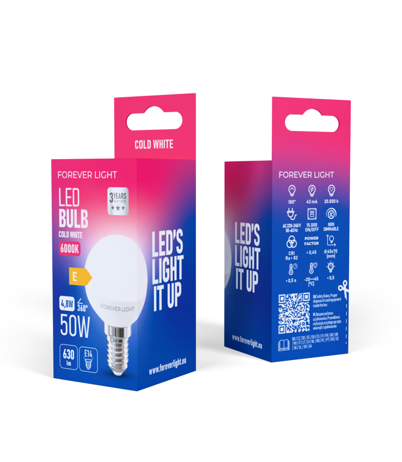 Żarówki Forever Light E14 G45 to połączenie nowoczesnego designu, wydajności i ekonomii użytkowania. Ich kompaktowy kształt sprawia, że doskonale komponują się z lampami stołowymi, nocnymi czy dekoracyjnymi. To rozwiązanie dla klientów poszukujących niezawodnego, eleganckiego i energooszczędnego oświetlenia.