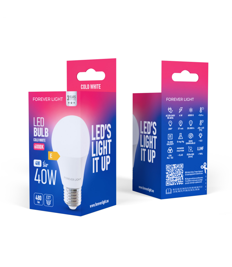 Wszystkie modele wyposażone są w popularny i uniwersalny gwint E27, co czyni je kompatybilnymi z większością lamp i opraw dostępnych na rynku. Żarówki LED Forever Light odznaczają się klasą energetyczną E, co pozwala na zauważalne obniżenie rachunków za prąd. Dodatkowo charakteryzują się długą żywotnością, co zmniejsza konieczność częstej wymiany.