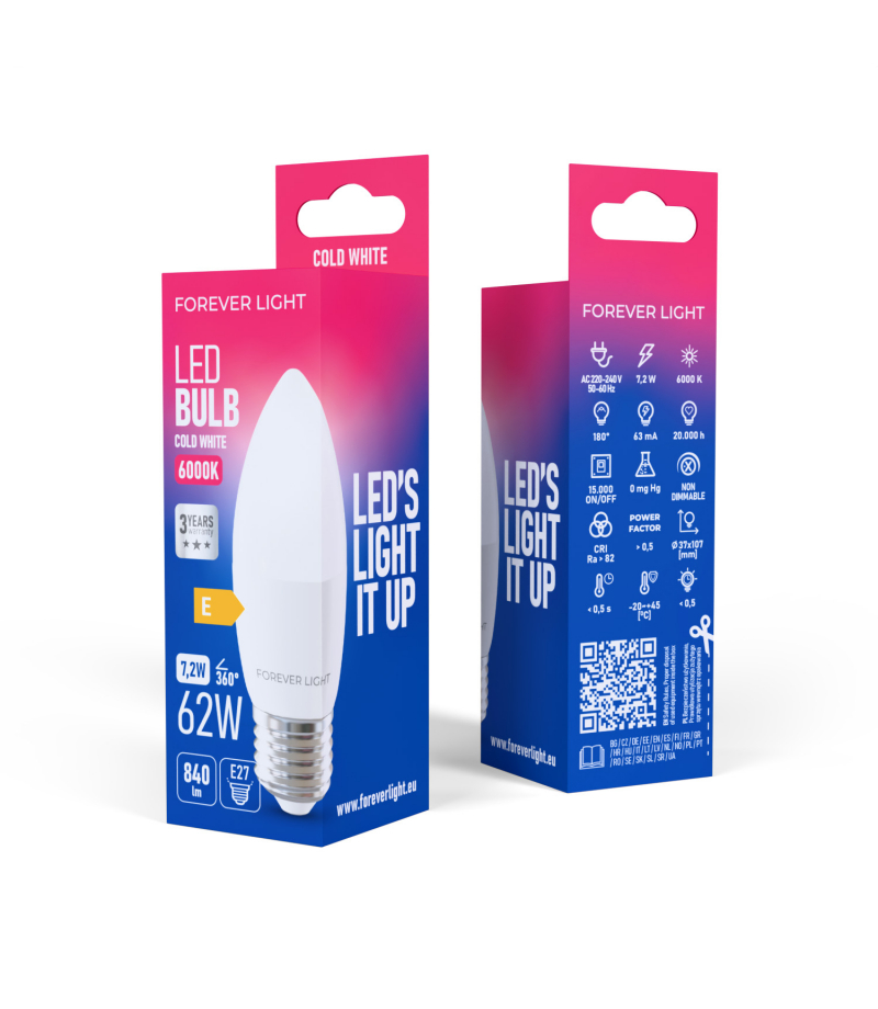 Forever Light Żarówka LED E27 C37 7.2W 840lm 6000K klasa E TFO RTV9000018