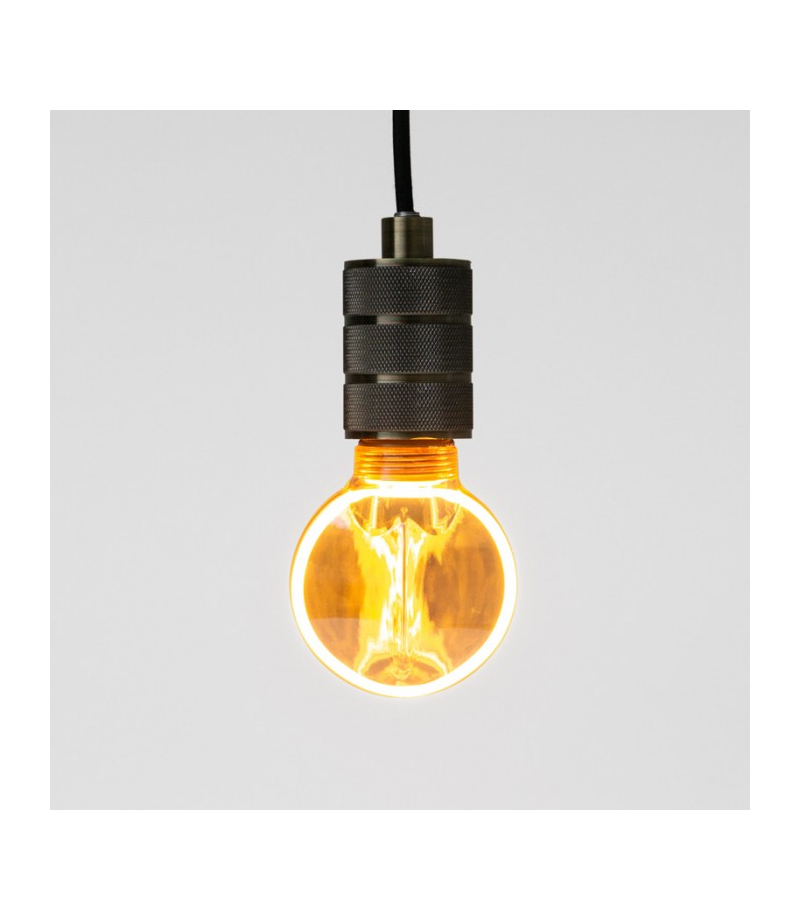 Wyposażona w klosz ze szkła bursztynowego, emituje bardzo ciepłe przytulne światło.
