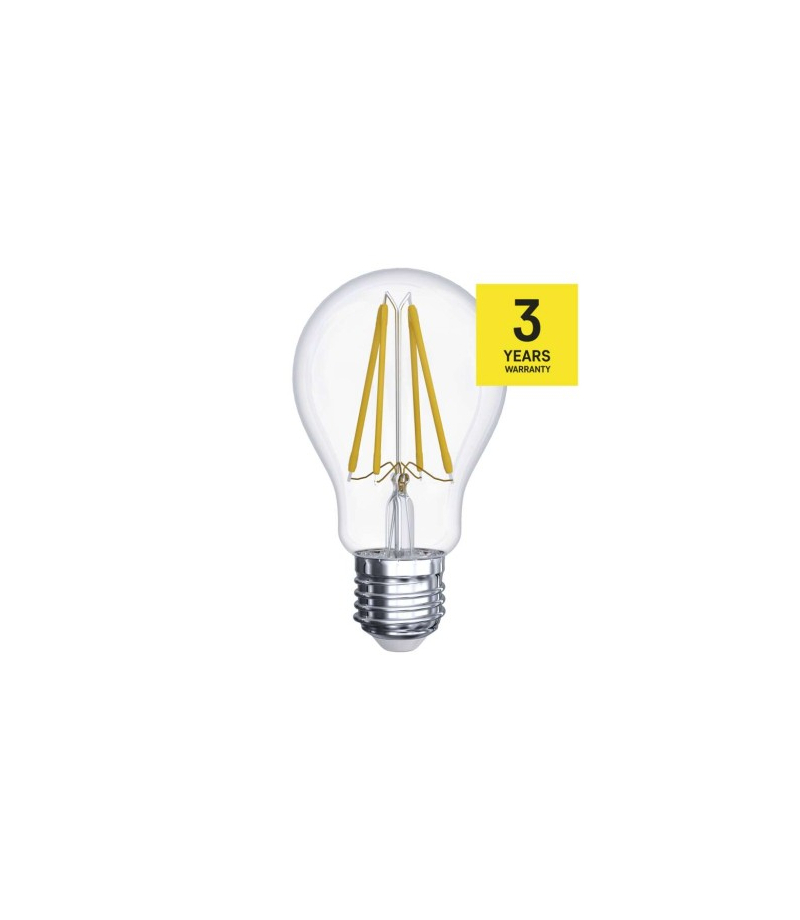 Żarówka LED Filament A60 5,9W E27 neutralna biel Producent: EMOS Lighting Kod producenta: ZF5141 Informacje ogólne barwa światła: neutralna biel chip LED: COB ilość cykli włącz\wyłącz: 30 000 ilość LED: 4 indeks oddawania barw (CRI): Ra >,80 kąt świecenia: 320° klasa energetyczna: D kształt: A60 moc: 5,9 W napięcie: 230 V~/50 Hz odpowiednik żarówki: 60 W okres gwarancyjny: 3 lata opakowanie: 1 szt., pudełko ściemnialna: nie seria:...