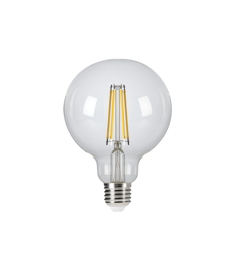 Kanlux XLED G95C to seria dekoracyjnych żarówek LED w efektownej, kulistej formie, oferująca dwa warianty mocy – 7,8W (1055 lm, odpowiednik 75W) i 10,5W (1521 lm, odpowiednik 100W) – dzięki czemu łatwo dopasujesz je do własnych potrzeb. Skuteczność świetlna sięgająca 145 lm/W (dla wersji 10,5W) pozwala na energooszczędne, a zarazem efektywne oświetlenie przestrzeni. Neutralna barwa światła (4000K) zapewnia komfortowe oświetlenie do pracy i codziennego użytku, a szeroki kąt świecenia 320° gwarantuje równomierne rozproszenie światła w całym pomieszczeniu. Kulista forma sprawia, że żarówka doskonale prezentuje się w dekoracyjnych oprawach z widocznym źródłem światła, dodając wnętrzom charakteru i elegancji.