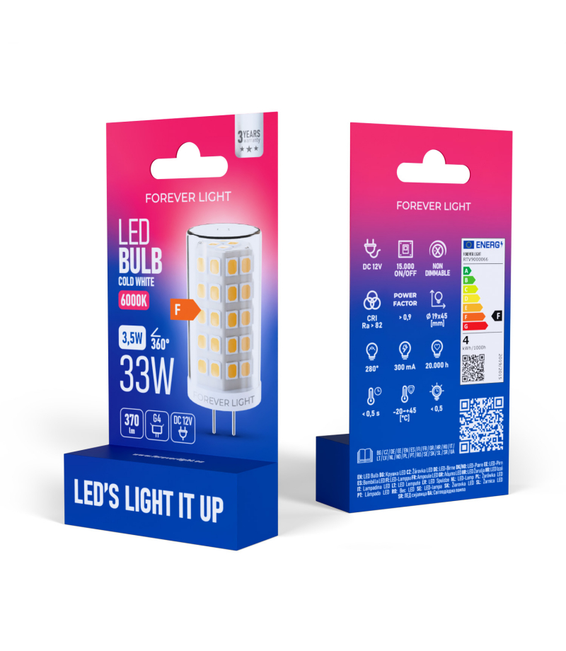 Żarówki Forever Light G4 3.5W to idealne rozwiązanie dla klientów szukających małych, energooszczędnych i estetycznych źródeł światła. Doskonale podkreślają detale wnętrza, nadając mu wyjątkowego charakteru. To wybór łączący funkcjonalność, trwałość i elegancję w kompaktowej formie.