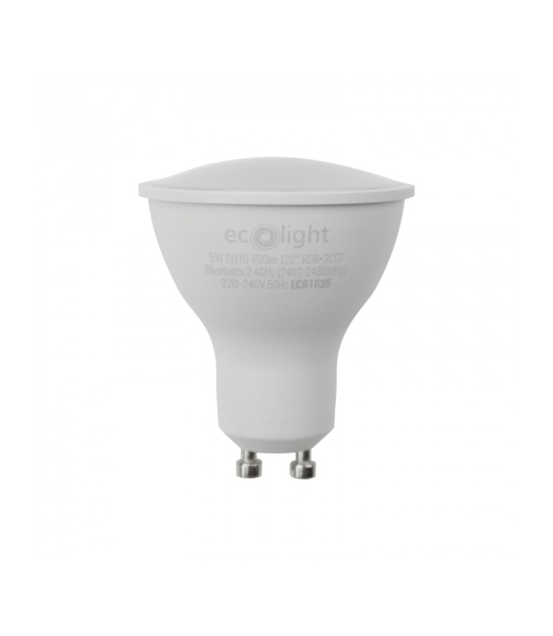 Żarówka LED GU10 5W RGB+CCT Tuya Smart Bluetooth Eco Light EC61636 Żarówka LED GU10 5W RGB+CCT Tuya Smart Bluetooth Inteligentna żarówka LED GU10 5W sterowana z aplikacji w systemie Tuya Smart przez Bluetooth. Pozwala wybrać dowolny kolor RGB oraz regulować barwę białą CCT w trzech zakresach: ciepły / neutralny / zimny. Dzięki temu łatwo dopasujesz oświetlenie do nastroju, pory dnia lub funkcji pomieszczenia. Żarówka zapewnia 400 lm strumienia świetlnego, posiada kąt świecenia 120°...